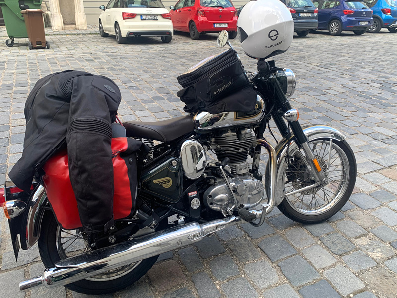 Dort lernte ich am nächsten Morgen den Chef „Floh“ kennen. Nach einem kurzen Gespräch mit ihm erfuhr ich, dass auch er den verstorbenen Fritz von Eifeltec gekannt hatte. Floh hatte sich auf die alten Vergaser-Maschinen spezialisiert und wollte mit dem Verkauf von Neufahrzeugen nichts mehr zu tun haben. „Die neue Meteor sei für ihn keine echte Enfield mehr.“ Floh schien so ein richtiger Endfield Freak zu sein und erzählte mir von einigen Verbesserungen die man an meinem Motorrad vornehmen könnte und ich solle mich doch nach meiner Reise mal melden. Wie dem auch sei, lange hatte er keine Zeit und ich machte mich wieder auf meinen Weg, weiter Richtung Süden.