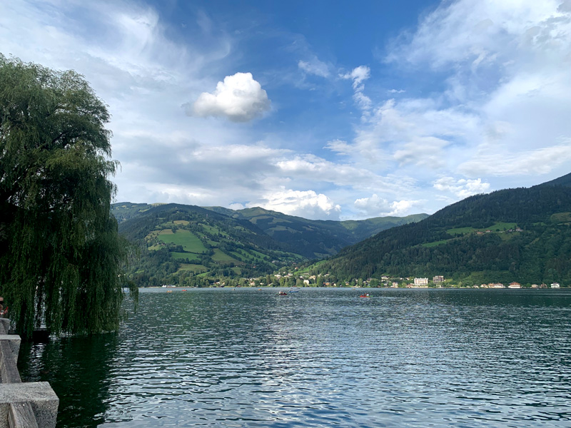 Vierter Tag. 29.07.2022 Nach einigen Stunden Fahrt, die majestetischen Alpen immer im Visier, erreichte ich schon bald mein nächstes Domizil das "Glaser Haus" in Zell am See. Das Hotel lag mitten im Ortsgeschehen in mittlerer Hanglage. Steile und schmale Treppen führten hinauf ins Dachgeschoss. Die schweren Packtaschen, das Zelt mit Schlafsack und Luftmatratze, Tankrucksack und Helm, das alles musste irgendwie die schmalen Treppen hinauf – leider gab es keinen Aufzug. Nach einem schönen Mittagsschlaf in dem kleinen hochpreisigen Dachstübchen kleidete ich mich und ging hinab an die Uferpromenade vom Zeller See. Eine Menge Touristen hatten die gleiche Idee. Ein Großteil der Touristen waren Araber in teure Stoffe und teure Marken gekleidet. Waren sie Touristen oder lebten sie in diesem teuren Pflaster? Nach etwas Recherche fand ich heraus warum sie kommen,