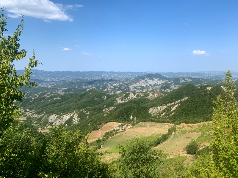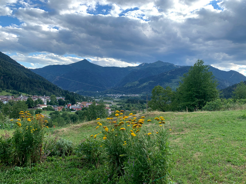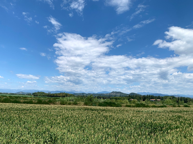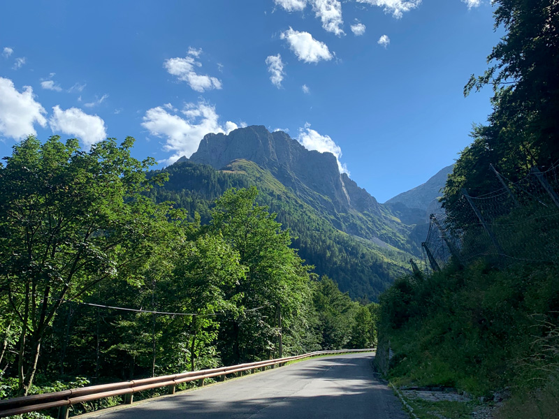 Dafür luden sie mich zu einer kleinen Nachtwanderung ein. Mehrere Familienmitglieder waren zu Besuch gekommen und der Großvater hatte Petroleumlampen organisiert. Und während des Nachtausflugs berichtete er von “den Deutschen“ im Krieg, wie sie Teile des Dorfes, die Kirchen und die Schulen besetzt hatten. Er klang dabei recht aufgewühlt und alle lauschten aufmerksam. Leider konnten wir aber die kleine Dorfkirche, die er uns zeigte, nicht besichtigen. Es gäbe nur noch ein paar wenige alte gläubige Menschen im Dorf und so habe man die Kirche geschlossen. Heute scheint es die Säkularisierung zu sein, die die Menschen von den Kirchen fernhält. Die jungen Leute zieht es auf Arbeitssuche in die Stadt. Die geistliche und spirituelle Welt findet dann häufig nur in esotherischen Randgruppen ihren Ausdruck. Vom abendlichen Spaziergang zurück nahm die Geburtagsparty erst richtig an Fahrt auf. Laute Musik, trotz geschlossener Fenster, Stopfen in den Ohren und ein knurrender Magen wog mich irgendwann in den Schlaf. Am frühen Morgen erzählte mir der Herr im Nachbarzimmer, dass es unten ein sehr gutes Frühstück gäbe. Geduscht und gekleidet ging ich zum Früstückstisch. Kaffee war in Italien obligatorisch und ein paar süße Croissants gab es dazu. Am Buffet lag noch etwas Käse und Wurst. Wie sollte man das kombinieren? Marmeladenfüllung im Croissant, das war nichts für einen, an ein herzhaftes Frühstück gewöhnten Deutschen. Das sogenannte italienische Frühstück sollte mir aber noch häufiger begegnen. Zum Abschied hatte ich noch ein gutes Gespräch mit Luisa. Sie erzählte mir von ihrer Diabetiserkrankung und dass sie regelmäßig zur Dialyse müsse. Dabei strahlte sie eine ansteckend positive Einstellung zu ihrem Leben aus. Irgendwann sagte ich „arrivederci" und steuerte meine nächste Etappe durchs Flachland, an Flussläufen entlang, die in smaragdgrünem Wasser aus den Bergen polterten, Richtung Triest ans Meer an.